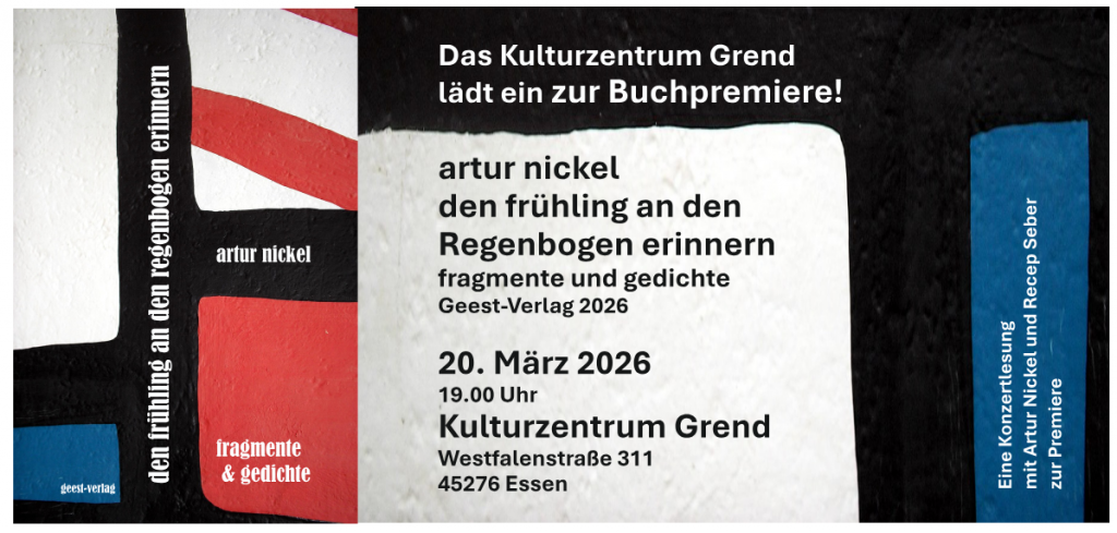 Buchpremiere “den frühling an den Regenbogen erinnern”, artur nickel, 20.03., 19:00