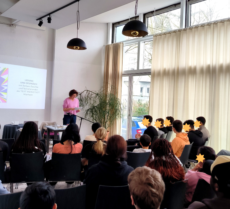 Gegen Ende des letzten Jahres kam erst die Idee auf, mit zwei achten Klassen zu einer Lesung in das Kulturzentrum Grend zu kommen, denn Lesungen von Kinder- und Jugendbuchautor:innen sind seit vielen Jahren ein fester Bestandteil unserer kulturpädagogischen Arbeit. Und so kam es, dass die 8e und 8f unserer Schule am Donnerstag, den 15.01.2026, die gewohnten Unterrichtsräume verließen und einen Kurztrip zum Kulturzentrum Grend machten. Sichtlich beeindruckt von dem großen Backsteingebäude, an dem sie sonst nur mit dem Bus vorbeifahren, betraten sie das Traditionshaus, das in Steele und darüber hinaus seit vielen Jahren als Ort von namhaften Kulturveranstaltungen und des Bildungswerkes Grend bekannt ist. Dort wurden wir sehr herzlich von Artur Nickel, der Geschäftsführerin des Grend Gemma Russo-Bierke und der Autorin Barbara Zoschke im literarischen Wohnzimmer empfangen. Die dann folgenden 60 Minuten vergingen wie im Flug. Gespannt und sichtlich beeindruckt hörten die Achtklässler der Autorin zu, die nicht nur alle neugierigen Fragen der Schüler:innen beantwortete, sondern auch aus dem Nachwort zu ihrem Buch „Einmal im Leben“ vorlas und von ihrer ersten Idee bis hin zur Herausgabe des Buches berichtete. Dann wurde gemeinsam über das Thema „Wünsche haben“ philosophiert und diskutiert. Die Schüler:innen, welche sich zuerst neugierig zurückhaltend und schüchtern zögerlich verhielten, waren durch den sehr empathischen Umgang von Barbara Zoschke bald alle ins Boot geholt und so war es nicht erstaunlich, dass der Stift in der anschließenden eigenen Schreibphase nur so über das Papier flitzte. „Einmal im Leben möchte ich…“, diesen Satz galt es zu vervollständigen und so entstanden sehr persönliche, individuelle, autobiographische, kreative und zum Teil tief bewegende Texte, die nach nur 10 Minuten fertig waren und in der anschließenden gemeinsamen Runde sogar stolz vorgelesen wurden. Auf dem Rückweg zur Schule und sogar im anschließenden Unterricht hörte ich immer wieder Schüler:innen, die über diesen Kurztrip sprachen und sich über das Thema „Wünsche haben“ austauschten. Projekte wie dieses sind wie kleine Diamanten im pädagogischen Schulalltag, weil sie so viele Ziele auf den unterschiedlichsten Ebenen erfüllen. Die Veranstaltung hat an diesem Tag ein LITERATURERLEBNIS für alle geboten, weil in nur 60 Minuten Raum und Platz für Literatur geschaffen wurde.