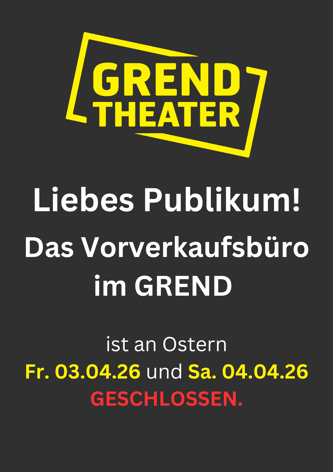 GRENDTheater Zusatzinfos (gelb unterlegt): FÄLLT AUS!