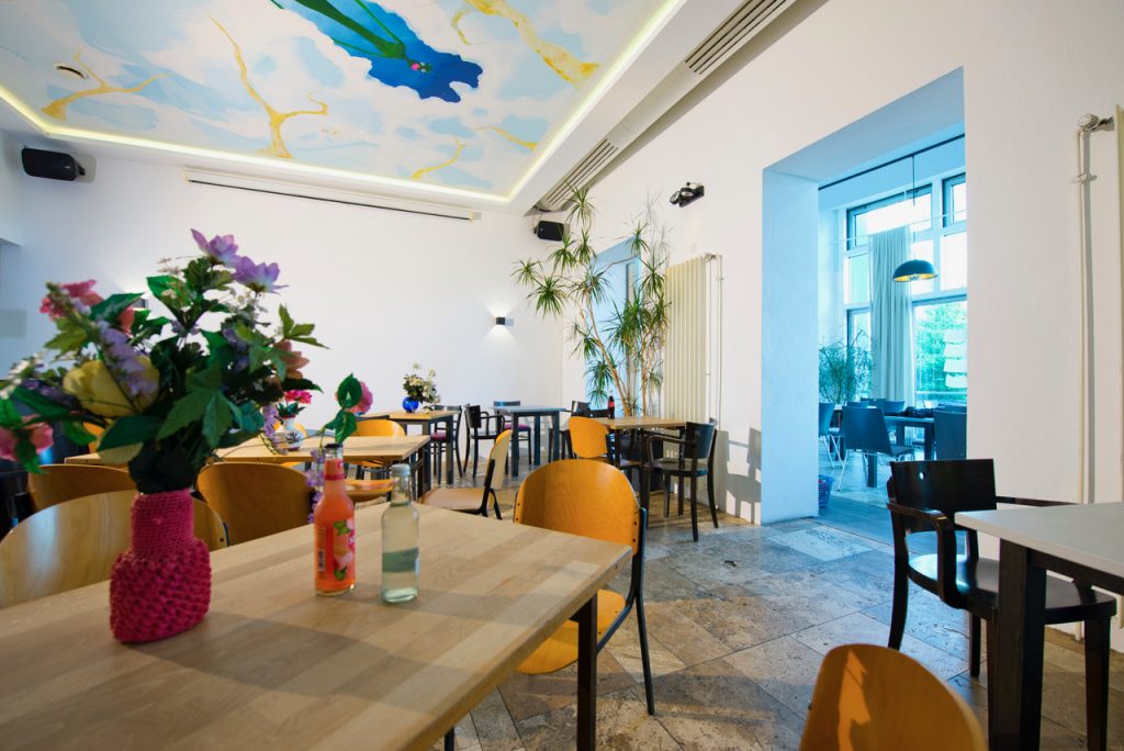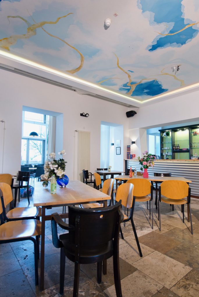 - barrierefreie Zugangsmöglichkeit und Toiletten (via Aufzug) und entsprechendes Platzangebot im Theater und der Bar